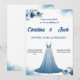 Machen Sie Ihren besonderen Tag unvergesslich mit dieser atemberaubenden Hochzeitseinladung in Aquarellfarben mit einem anmutigen blauen Ball und zarten blühenden Akzenten. Das ätherische Design verbindet sanfte Aquarellfarben mit blauen Blumen und Grünpflanzen und schafft eine elegante und romantische Atmosphäre. Diese Einladung eignet sich perfekt für eine Hochzeit im Sommer und bietet Platz für Ihre Zeremonie Details, Informationen zum Empfang und UAWG. Die fließende Kleiderabbild fügt eine einzigartige, fantasievolle Touch hinzu, die diese Einladung auszeichnet. Der individuell anpassbare Text erlaubt es Ihnen, alle Details zu personalisieren und gleichzeitig das ausgefeilte blaue Farbschema beizubehalten. Ideal für feierliche Hochzeiten, Gartenzeremonien oder jede Feier, bei der Eleganz mit modernem Stil zusammentrifft.