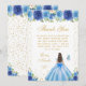 Diese elegante und glamouröse Sweet-Sixteen-Dankeskarte zeigt eine schöne Prinzessin mit braunem Haar und heller Haut in einem blauen Ballkleid. Der Text kombiniert handgeschriebene Schrift und moderne serifenlose Schriftarten für ein klassisches und anspruchsvolles Aussehen. Die floralen Arrangements, Schmetterlinge und goldenen Konfetti schaffen die perfekte Mischung aus rustikal und chic.