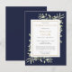 Eine elegante personalisierte Feier der Lebenserinnerung Einladung Postkarte mit botanischem Aquarellgrün auf marineblau Hintergrund. Entwickelt von Thisisnotme©