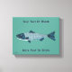 Eine bläuliche Forelle oder Lachs im Stil der Volkskunst auf einem hellblau-grünen Hintergrund. Es gibt zwei Orte, an denen du deinen eigenen Text hinzufügen kannst. Sie können sowohl die Schriftart- und Textfarbe als auch die Hintergrundfarbe ändern.