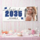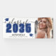 Dieses klassische und dennoch moderne Abschlussbanner ist die perfekte Möglichkeit, den Jahrgang 2026 zu feiern. Das Design ist mit den Abschlussdetails auf der linken Seite angeordnet, mit dem Aufdruck "Jahrgang 2026", wobei das Jahr in Blau hervorgehoben ist, um einen kräftigen Farbakzent zu setzen, der mit einer eleganten grauen Schrift ergänzt wird. Zwei blaue Abschlusskappen-Symbole fügen einen festlichen Touch hinzu, während der Platz darunter für den Namen und die Schule des Absolventen reserviert ist und so ein personalisiertes Zentrum für die Feier schafft.
