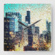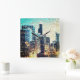 Blaue Gebäude im Mosaikstil mit Relief Quadratische Wanduhr