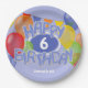 Diese lustigen und farbenfrohen Teller der Geburtstagsfeier enthalten die Meldung "Happy Birthday", die in skurril arrangierten, mattierten Ausschnitt-Cookies, umgeben von mehrfarbigen Ballons und bunten Flaggen - Alter und Name des Kindes können personalisiert werden - von katz_d_zynes