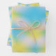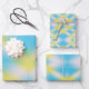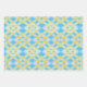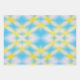 Ein niedliches Set von Verpackungspapieren mit einer gefärbte Krawatte in Blau, Gelb und Weiß. Jedes Papier hat eine andere nahe Struktur des Musters, wodurch das Set koordiniert wird.