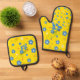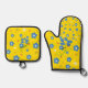 Blaue gelbe Blumen Ofenhandschuh & Topflappen-Set