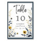 Die blaugelbe blühende Hochzeitsstimmung in der Tischnummer bietet wunderschöne Wildblumen in Blau und Gelb, die auf der Rückseite mit optionalen Gästennamen versehen sind. Das formelle Design und die Formulierung fügen Ihrer Hochzeitsfeier eine Touch der Eleganz hinzu. Dieser Eintrag koordiniert mit der Blue Yellow Wildblumen Elegant Wedding Suite. #wildflowerwedding #bluewedding #yellowwedding #goldwedding #formalwedding #elegantwedding #floralwedding #floralwedding