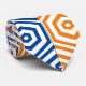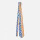 Eine einzigartige und lustige Krawatte mit einem blauen, orangefarbenen und weißen Sechseckmuster.