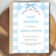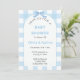 Blaue Gingham-Baby-Einladung, Blaues Baby-Junge Einladung
