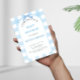 Feiern Sie die bevorstehende Ankunft Ihres kleinen Bündels Freude mit dieser charmanten blauen Gingham-Baby-Einladung, perfekt für die Begrüßung eines süßen Babyjungen oder einer geschlechtsneutralen Feier. Diese Einladung macht die Planung Ihres besonderen Tages mühelos und stilvoll, indem sie das klassische Gingham-Muster mit einem modernen, sauberen Design kombiniert, das für Sommer-, Picknick- oder lässige Baby-Shower-Themen geeignet ist.