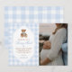 Blaue Gingham Elegante Teddybär-Baby-Party-Foto-Dankeskarte