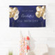 Für eine mädchenhafte und glamouröse 21. Geburtstagsfeier (oder jedes Alter). Ein marineblauer Hintergrund. Die blaue Farbe ist ungleichmäßig. Mit goldenen Ballons dekoriert. Personalisieren und fügen Sie einen Namen, Datum und Alter 21. Weiße Buchstaben. Der Name ist mit einem modernen handgeschriebenen Stilskript geschrieben.