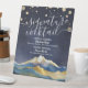 Blaue goldene Berge Hochzeit Signature Drink Menü Sockelschild