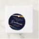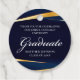 Diese elegante blaue und goldene Graduierungsparty begünstigen Tag mit modernen geometrischen Linien über Ihrem formalen Text. Das klassische weiße Skript beschreibt Ihre Graduiertenschule und Klasseninformationen. Diese hochwertigen Geschenketiketten sind perfekt für einen 2025 Uni- oder Universitätsabschluss.