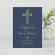 Moderne blaue Bestätigungseinladung mit einem goldenen Kreuz.Personalisieren Sie mit Ihrem Text. Stellen Sie sicher, dass alle anderen Artikel in dieser hübschen Bestätigungsabholung für ihn Karo.