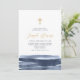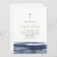 Eine moderne marineblaue Aquarell und Imitate Gold Cross Taufe Einladung. Das perfekte Design für Ihre kleinen Jungs, die taufen oder taufen.