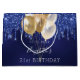 Eine Geschenktasche für einen gmädchenhaften und glamourösen 21. Geburtstag (oder jedes Alter). Ein marineblauer Hintergrund mit Tropfen aus dem Glitzer und goldenen Ballons. Die blaue Farbe ist ungleichmäßig. Personalisieren und fügen Sie ein Datum, Name und Alter 21. Der Text: Der Name ist weiß geschrieben mit einem modernen handgeschriebenen Schrift