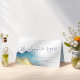 Moderne Vintage Elegante Hochzeitsplatz & Escort Karten Template - Blue Green und Imitate Gold Foil Wasserfarben Berge Landschaft. Diese Designs können für Ihren Besondere Anlass Personalisiert sein und wären perfekt für Ihre Hochzeit, Brautparty, Engagement Party, Geburtstagsparty und viele weitere Besondere Anlässe.
