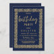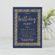 Ein einfaches modernes marineblaues Blau und Gold mit elegantem geometrischem Konfetti Gold und Marinebau Design mit handgeschriebener Goldtypografie. Die Einladung zur Geburtstagsfeier ist der perfekte Ausdruck für jede Frauenveranstaltung. Passen Sie dieses Design mit Ihren Details und Monogramm Initial an. Alle Designs sind gedruckt.