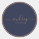 signieren Sie chic typografie marineblau goldfarbenen Rundaufkleber mit einer femininen klassischen Touch mit Ihrem allgemeinen Namen in einem kalligraphischen extravaganten Schriftart und Ihrem Beruf.