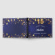 Antrendy marineblau, unebenfarbiger Hintergrund mit goldenen Imitaten. Fügen Sie Ihren Namen und Text hinzu. Die Altersnummer wird mit einem Schriftart im Ballonstil geschrieben. Spine: Fügen Sie Ihren Text hinzu.