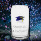 Dieses Glas zeigt eine stylische blaue Graduierenkappe mit der "Klasse von 2024" - personalisieren Sie sie mit Ihrem Namen: Design von Alma Wad Sie können den gesamten Text sowohl auf der Vorderseite als auch auf der Rückseite anpassen.