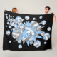 Der Volleyball-Fleecedecke dieses lustigen Mädchens zeigt eine "Explosion" von hellblauen, grauen und weißen Volleybällen in verschiedenen Größen und hellblauen und grauen Sternformen mit weißen Polka-Punkten, alle auf einem individuell anpassbaren schwarzen Hintergrund - die blau-grauen Bezüge der Volleyballs werden mit einem gürtlichen, blumenkaleidoskopischen Muster vermischt - passen Sie sich mit Spielername und jerischer Spielernummer -_d_zynes