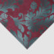 Dieses Design zeigt blau-grüne gestrichelte Blume auf einem roten weinburgundischen Hintergrund. Ideal für decoupage Art, Papier Handwerk oder Packgeschenke.