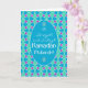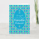 Eine schicke Grußkarte für Ramadhan, mit einem traditionellen islamischen Muster in Blau, Grün und Lila, in Weiß umrissen; aus der Posh & Painterly 'Islamic' Kollektion.