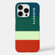 Ein trendiges, blaugrünes und orangefarbenes Streifen-Muster verleiht Ihrem personalisierten iPhone 16 Pro Gehäuse eine kühne und moderne Touch. Passen Sie es mit einem Namen, Monogramm oder Initialen an, um ein einzigartiges und stilvolles Aussehen zu erhalten.