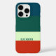 Ein trendiges, blaugrünes und orangefarbenes Streifen-Muster verleiht Ihrem personalisierten iPhone 16 Pro Gehäuse eine kühne und moderne Touch. Passen Sie es mit einem Namen, Monogramm oder Initialen an, um ein einzigartiges und stilvolles Aussehen zu erhalten.