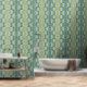 Blaue, grüne und cremefarbene Streifen und Schacht Tapete
