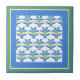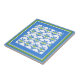 Eine hübsche Keramik mit Jugendstil-Motiven in hellblau, weiß und grün, aus einem handgemalten Design von Judy Adamson. Fügen Sie einen Holzrahmen hinzu, um ein Trivet zu machen!