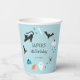 Fun halloween Thema Geburtstagsparty Papier Becher mit der Darstellung von halloween Kreaturen in einem blauen Hintergrund.