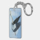 Blaue Herde im Flug über Wasser Schlüsselanhänger