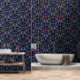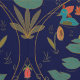 Marinebecken Heronsee Wiederbelebende Tapete mit einem von Anne Londez gezeichneten Muster, das Natur und Artenvielfalt für eine elegante Kunsthandwerkskunst-Wohngestaltung zelebriert. Können Sie die Helden, Enten, Eule, Libelle und Frosch sehen, die sich hinter einer Lotus-Blume verstecken?