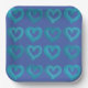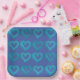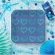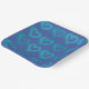 Ein romantisches Design mit zahlreichen handgezeichneten mittelblauen Doppelherzen, die über den Teller schwebend. Standardmäßig ist der Hintergrund indigo, aber Sie können ihn durch eine beliebige Farbe Ihrer Wahl ersetzen.