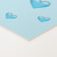 Desteis blaue Herzform in verschiedenen Größen auf einem hellblauen Hintergrund. Es gibt auch einen personalisierbaren Textbereich über dem großen Herzen in der Mitte.
