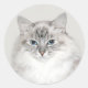 Blaue mit Augen Himalayan-Perserkatze mit Foto im Hintergrund mit einem silbernen und grauen Foto-Rundaufkleber