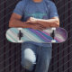abstraktes Skateboard mit blauen Himbeeren, damit Sie Ihre coolen Tricks zeigen können.