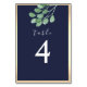 Dieses Design der Tischnummer verbindet rustikale Eleganz mit einer modernen Drehung. Die üppige, beruhigende und mit edlen Gold- und Marinebönen geschmückte Aquarellpflanze verleiht dem Hotel einen zeitlosen Charme. Das einfache Kalligraphieskript fügt eine Touch Grazie hinzu und ist somit perfekt für eine schicke, botanisch-inspirierte Hochzeit geeignet.