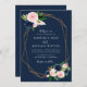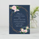 Navy blau und rot rosa Blumenmuster mit geometrischem Rahmen mit Text in der Mitte. Rosa Blüten und Marineblumen sind perfekt für Ihre Sommer- und Hochzeit im Herbst-Themen.