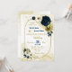 Wunderschöne botanische Hochzeitseinladung mit marineblauen Blume aus Elfenbeinweiß und Gold mit goldenen Blätter auf einer Goldkapsel. Die Einzelheiten des Glitzer werden simuliert. Es eignet sich sowohl für Hochzeiten als auch für Verlobungen. Für weitere Informationen klicken Sie bitte auf die obige Sammlung oder kontaktieren Sie mich.
