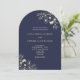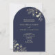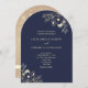 Mit dieser zeitlos eleganten Rose in Gold und Marineblau laden Sie ein, Ihre Hochzeitsfeier zu erleben. Freuen Sie sich auf ein raffiniertes Gewölbedesign und luxuriöse goldene Blumendetails. Mit einem komfortablen QR-Code für mühelose RSVPs und einem direkten Zugang zu Ihrer Hochzeitswebsite verbindet diese schicke Einladung klassische Eleganz mit moderner Praxisnähe.