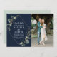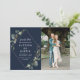 geometrischer Rahmen Design Aquarell Handgemalt eucalyptus foliage grün und ein Foto des Paares. Die Farbe und die Textdetails können personalisiert sein.