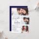 Blaue Hochzeitsschrift für 3 Fotos Einladung