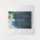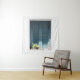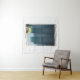 BLAUE HOLZTÜR AUF DER WEISSEN KONKRETEN WAND WANDTEPPICH