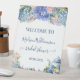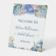 Blaue Hortensien Brautparty-Tee Begrüßung Sockelschild