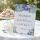 Dieses elegante blaue Hortensien-Braut-Tagetea-Party-Design ist perfekt für eine Frühlings- oder Sommer-Veranstaltung. Das klassische Blumen-Design zeigt sanfte, blassblaue Wasserfarben-Hortensien, akzentuiert mit neutralen, rosafarbenen Blüten und grünen Blättern. Dieses Schild ist Teil einer charmanten Schreibwarensammlung mit Vorlagen, die zur individuellen Gestaltung bereitstehen. Vervollständigen Sie Ihre Veranstaltung mit passenden Einladungen, Aufklebern und anderen Partyartikeln, um eine stimmige und schöne Ästhetik zu schaffen. Ideal für die Feier einer zukünftigen Braut, gibt diese Einladung den Ton für ein entzückendes und anspruchsvolles Treffen an und verspricht eine unvergessliche Gelegenheit voller Charme und Eleganz.
