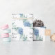 Blaue Hortensien auf weißem Hintergrund schöne Babyparty oder Hochzeit personalisierte Geschenkverpackung. Eine perfekte Möglichkeit, alle Ihre Babyparty-Geschenke oder Hochzeitsgeschenke für die Braut oder den Bräutigam zu verpacken. Perfekt für jede Hochzeit in jeder Jahreszeit, Die Aquarell-Hortensien sind einfach schön. Klassisch & chic.