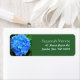 Blaue HydrangeasAdressen-Etiketten. Personifizieren Sie mit Name und Anschrift im hellblauen Text auf einem grünen Hintergrund, der mit einer großen, hellblauen Hydrangeaphotographie verziert wird.